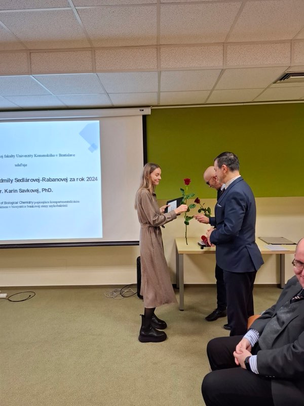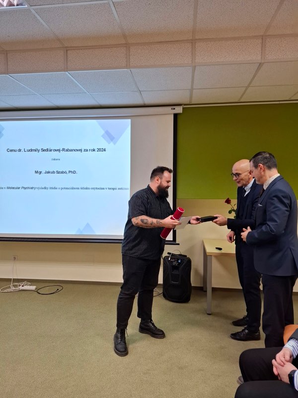 V deviatom ročníku Ceny dr. Ludmily Sedlárovej-Rabanovej (LSR) za výnimočnú publikáciu v biologických vedách sa stal laureátom Mgr. Jakub Szabó, PhD. z Ústavu molekulárnej biomedicíny Lekárskej fakulty Univerzity Komenského (aktuálne pôsobiaci na Ústave lekárskej fyziky a biofyziky LF UK), za prácu uverejnenú v časopise Molecular Psychiatry. Cenu si prevzal 10. decembra 2024 v Prezentačnom centre AMOS Prírodovedeckej fakulty UK na slávnostnom ceremoniáli, ktorý sa uskutočnil pod záštitou dekana fakulty prof. Petra Fedora.